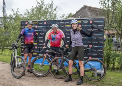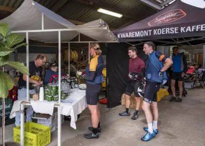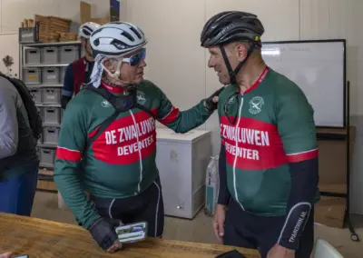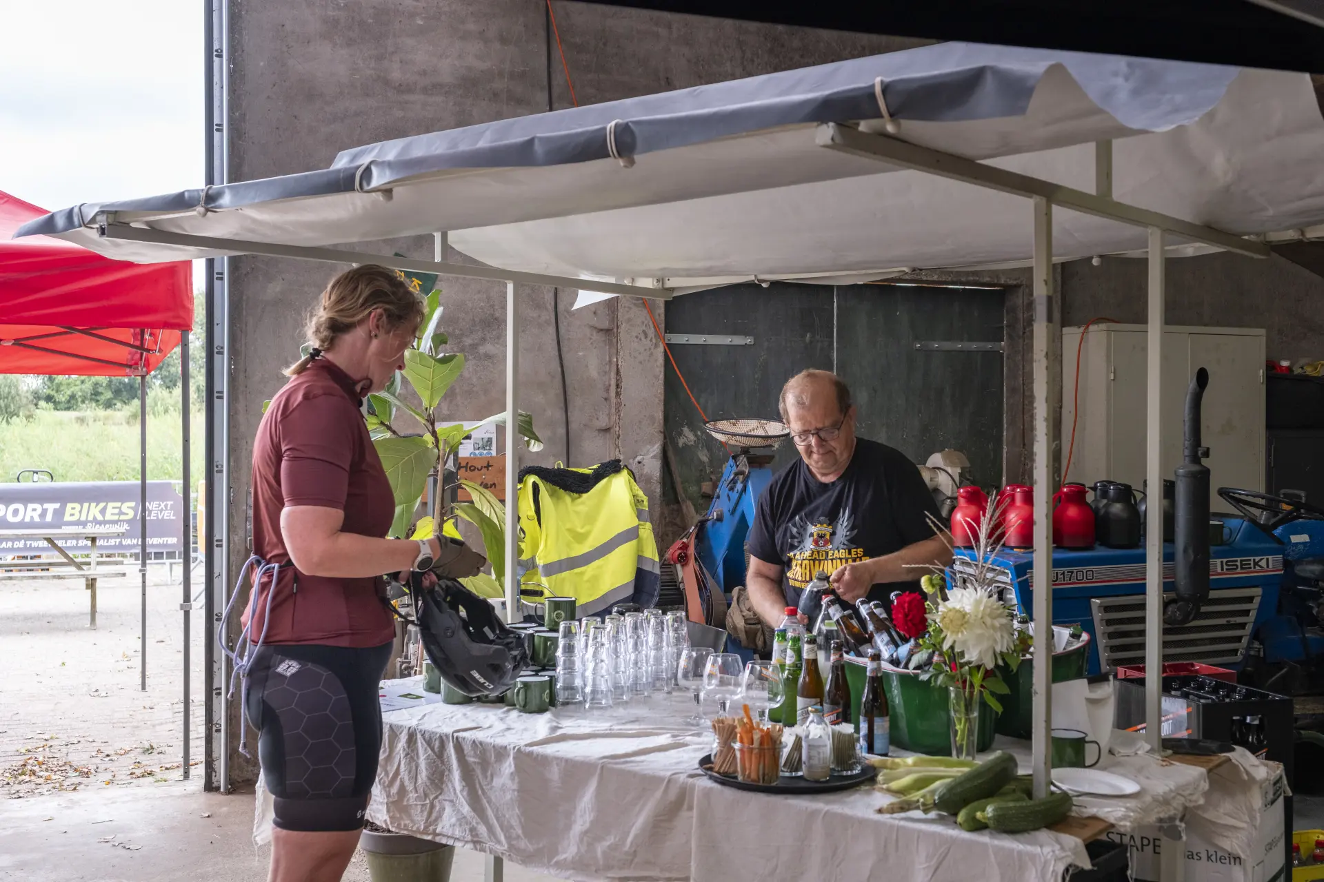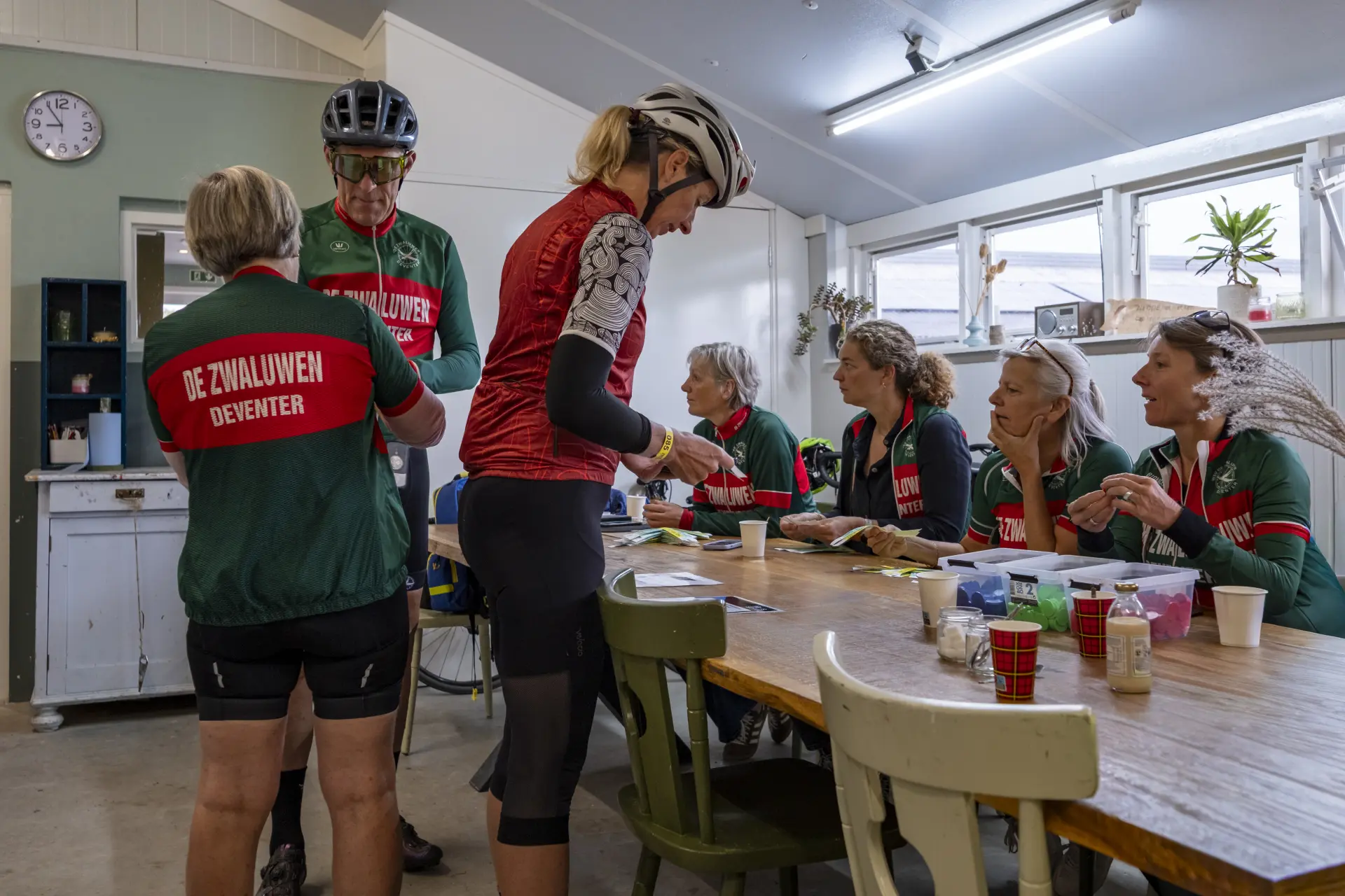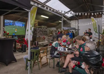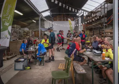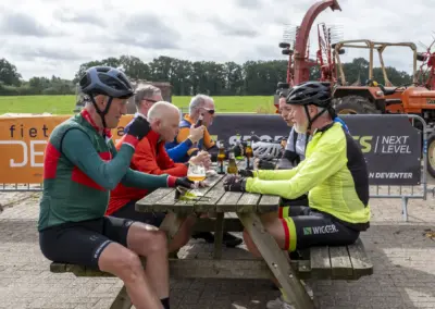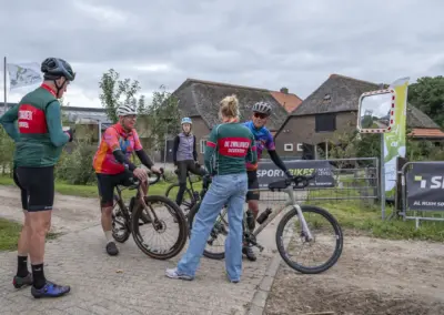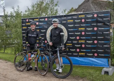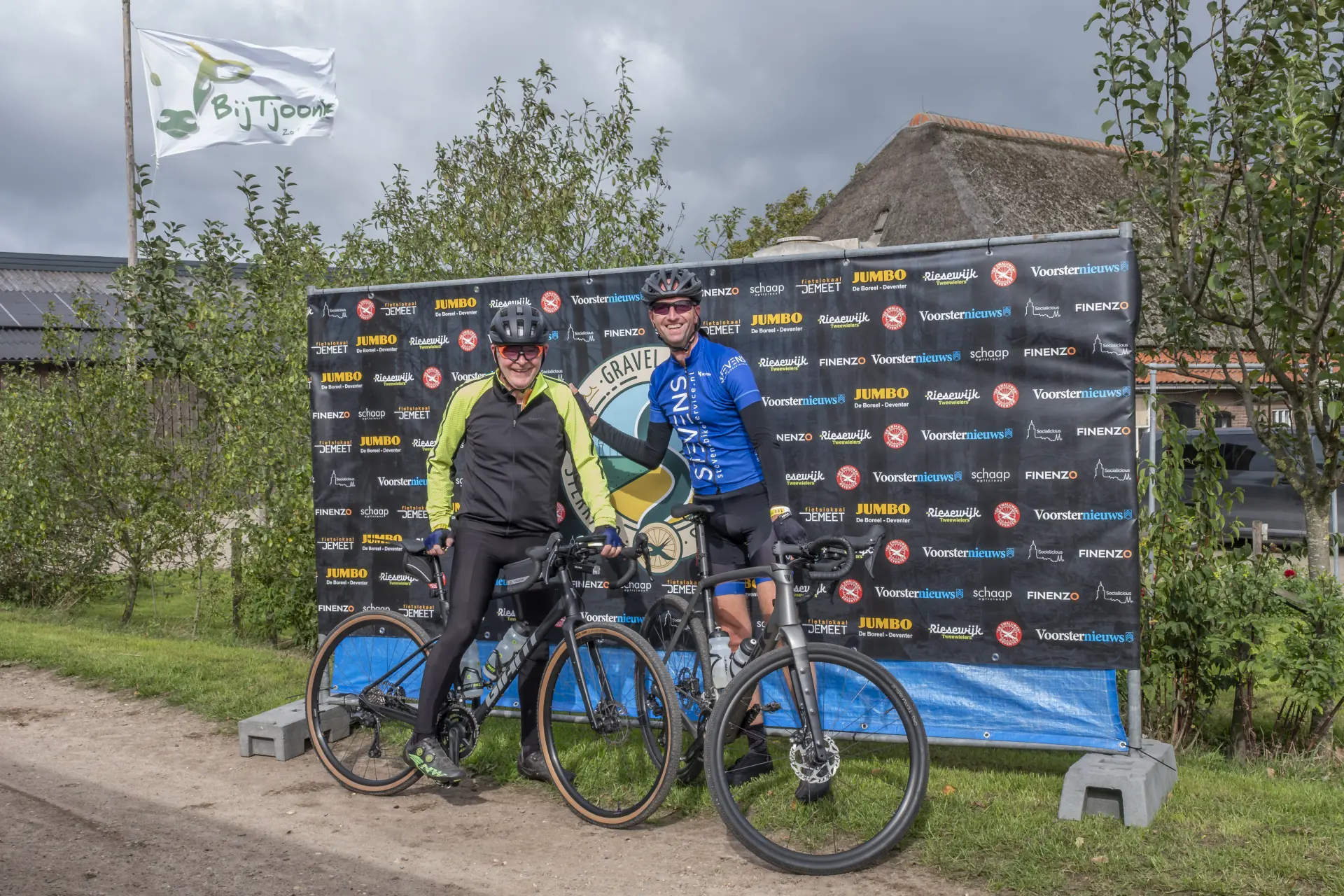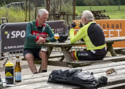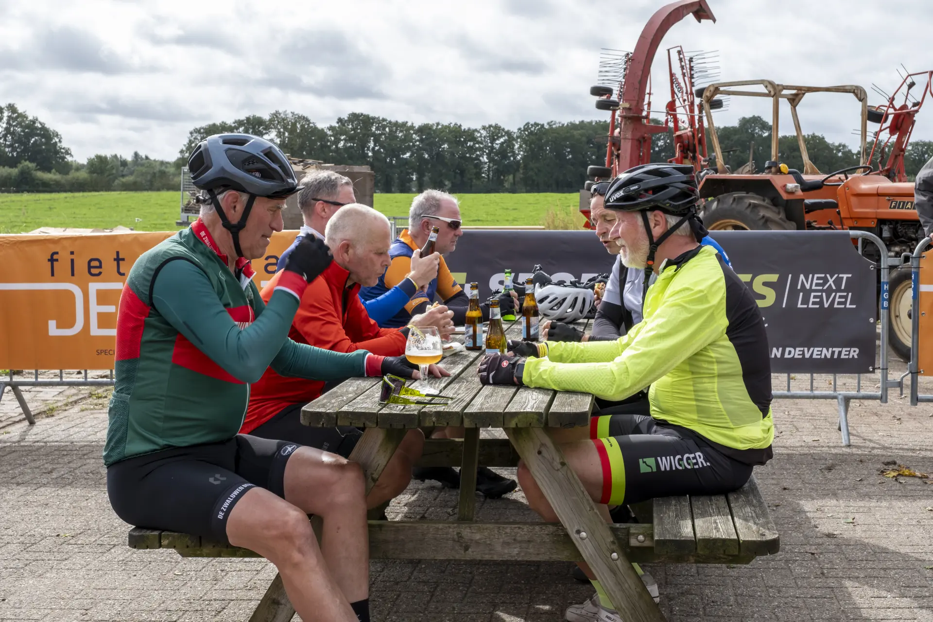 De start en finish waren dit jaar bij leer- en werkbedrijf Bij Tjoonk, waar de locatie fantastisch was aangekleed. Voor de rit eerst samen koffie drinken, na afloop gezellig napraten met live voetbal op het scherm, een drankje in de hand en een sappige hamburger van de grill.