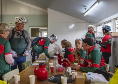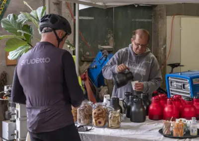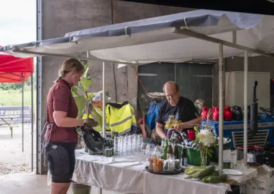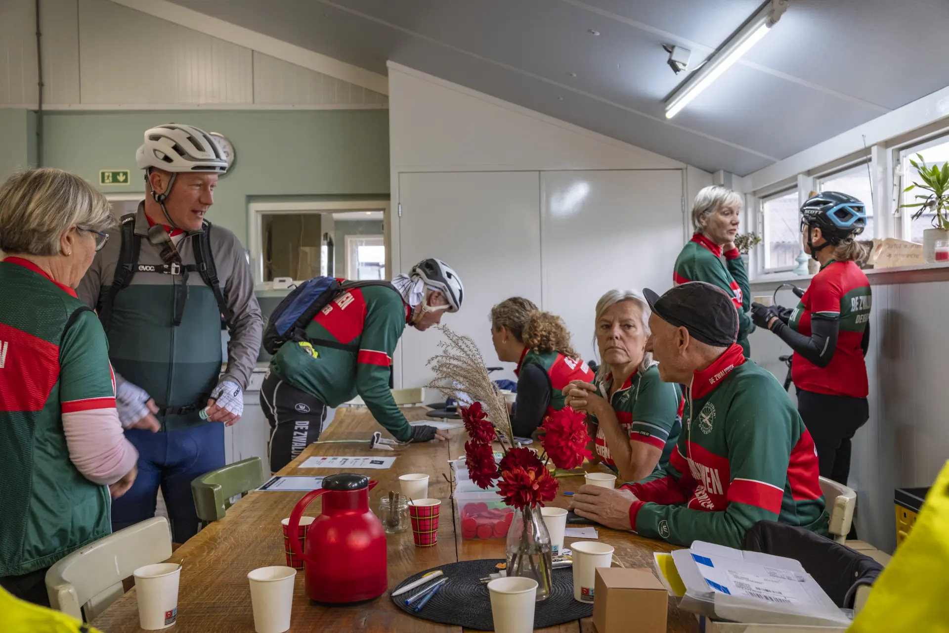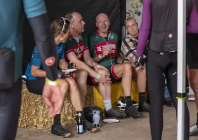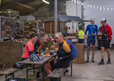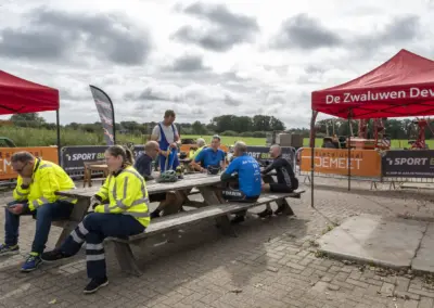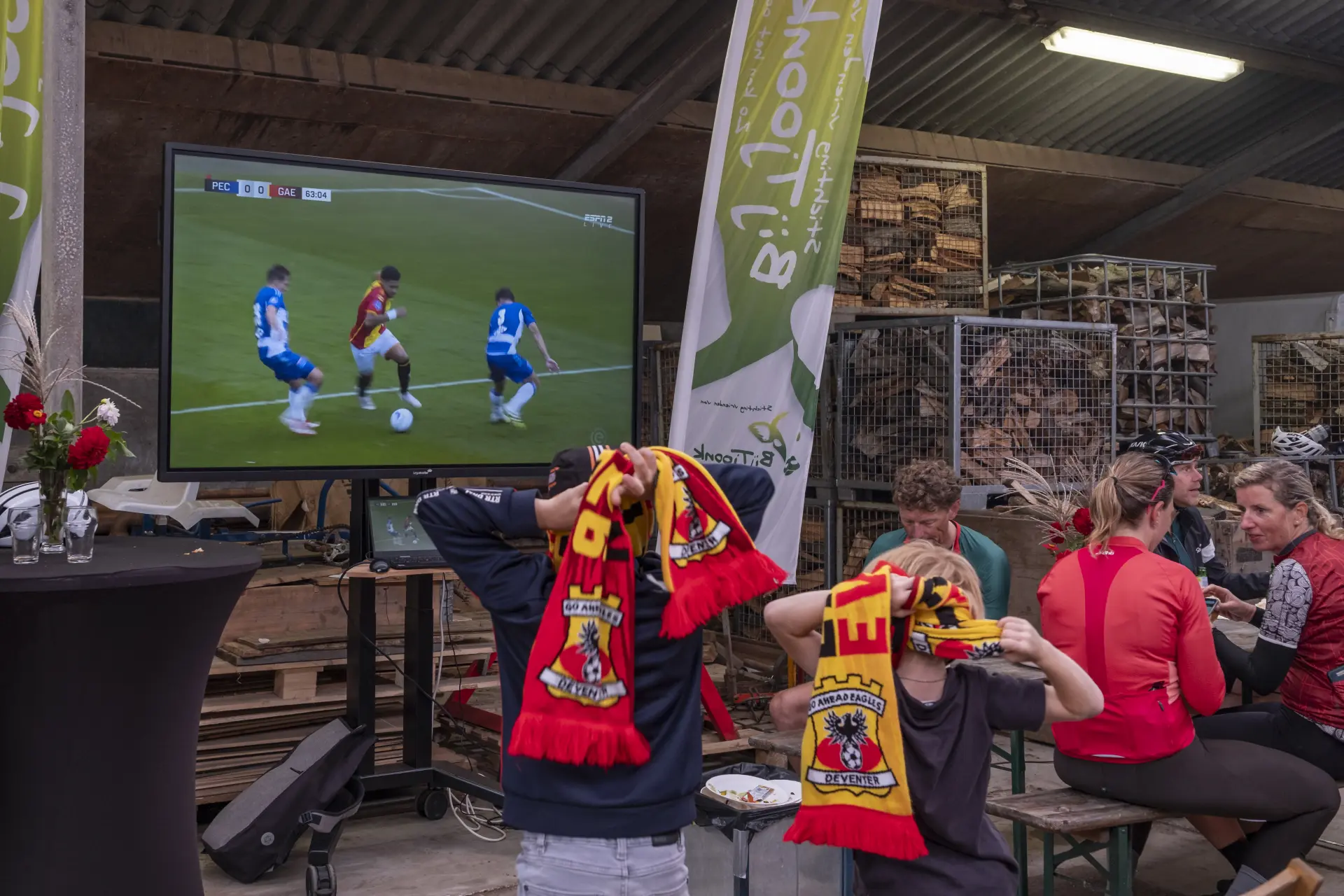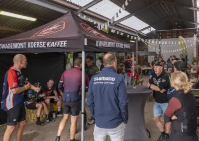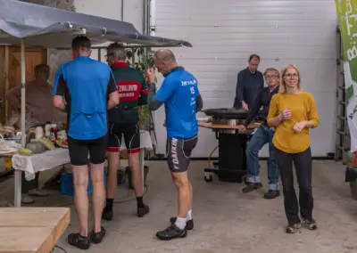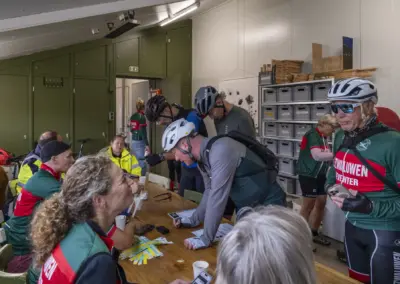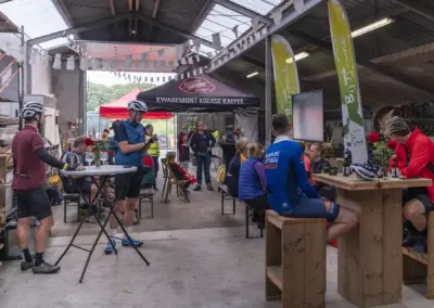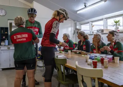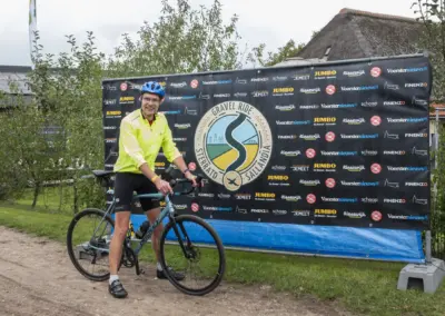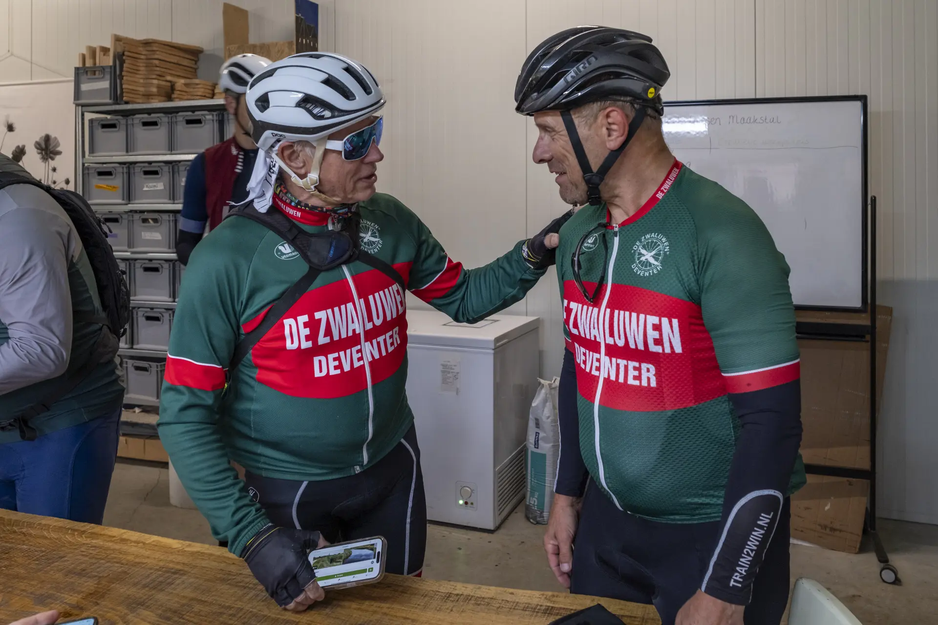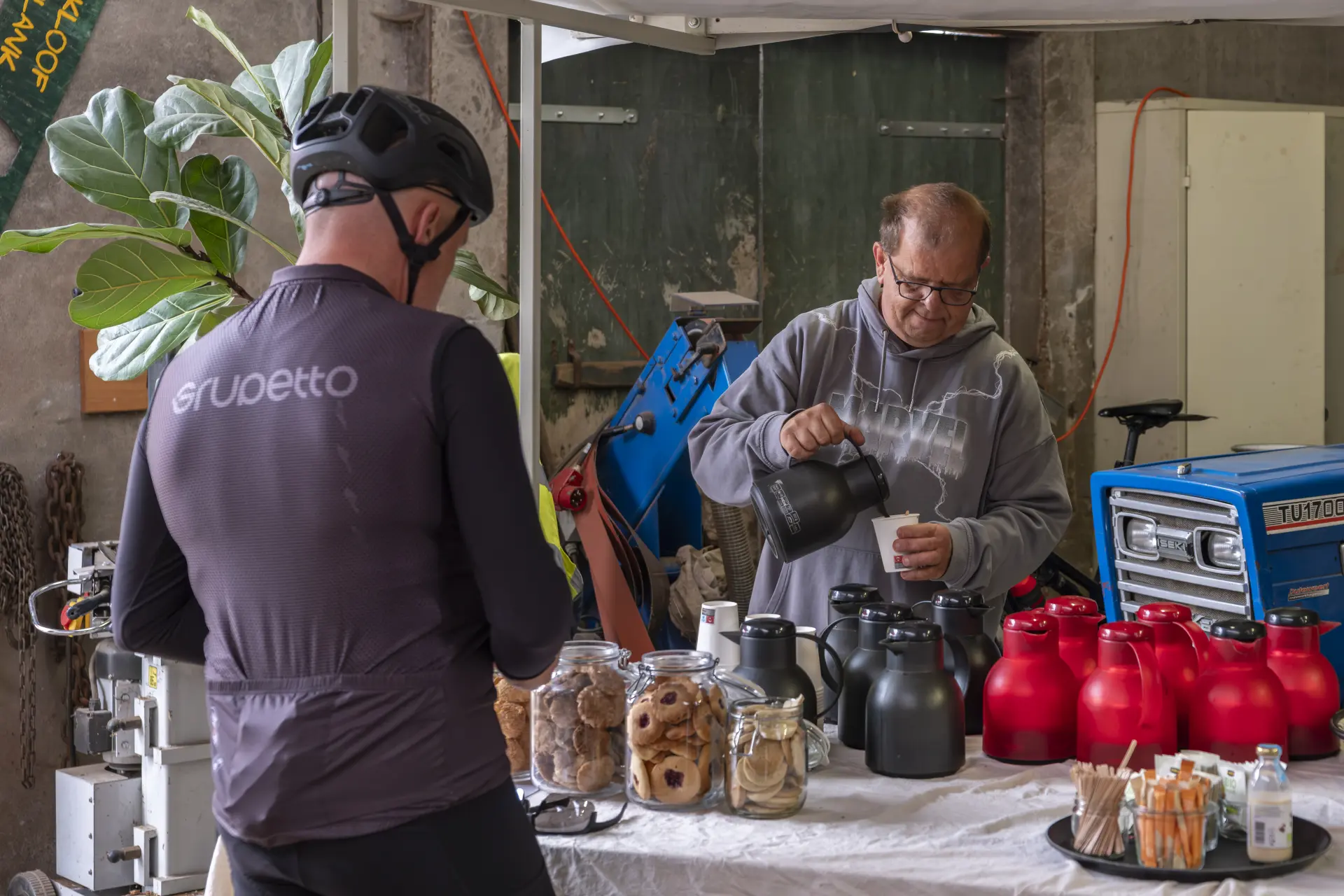 De start en finish waren dit jaar bij leer- en werkbedrijf Bij Tjoonk, waar de locatie fantastisch was aangekleed. Voor de rit eerst samen koffie drinken, na afloop gezellig napraten met live voetbal op het scherm, een drankje in de hand en een sappige hamburger van de grill.